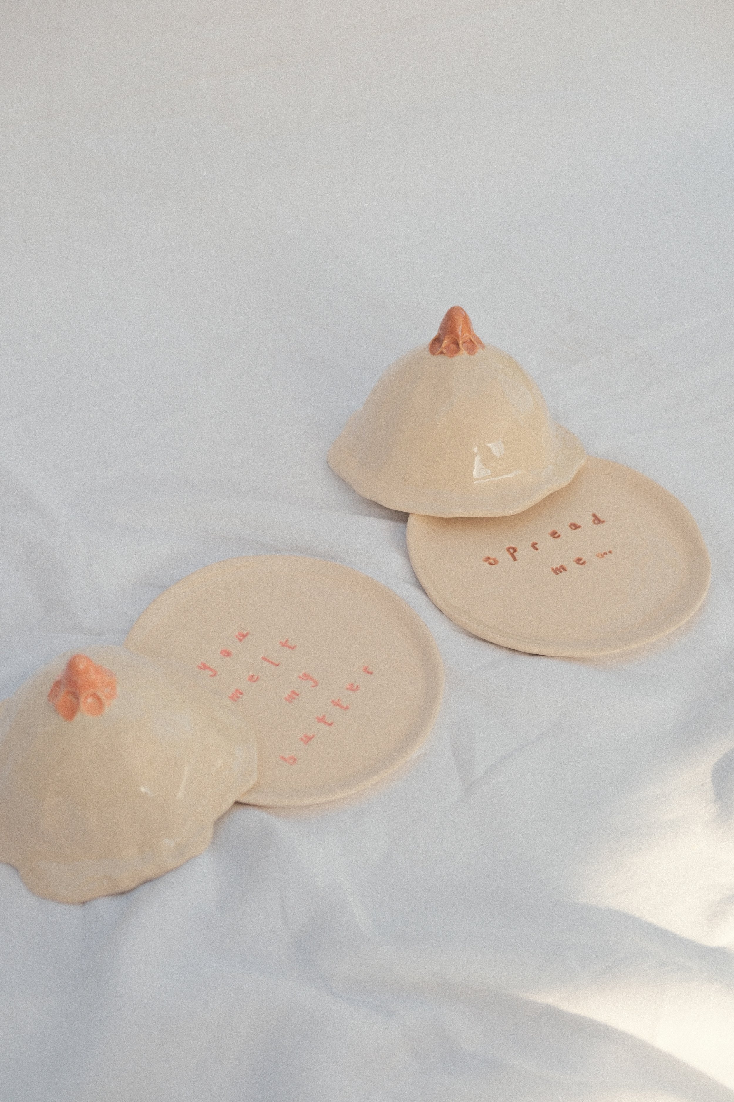 Shop › Butter plate Butter plate from €65.00 Quotes: Select Quotes You melt my butter Spread me Spread me - pink colour Add To Cart Added! You Might Also Like Spoon me... €20.00 Agotado 3/30 Limited Edition €100.00 Plates "Sex On The Table" from €42.00